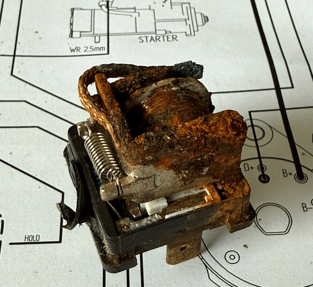 Here’s what the damaged relay looked like inside: